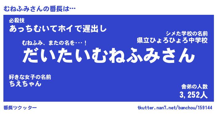 | ヒーロー風カッコイイあだ名 | 『スーパームネフミ』『天弓騎士ムネ』 |