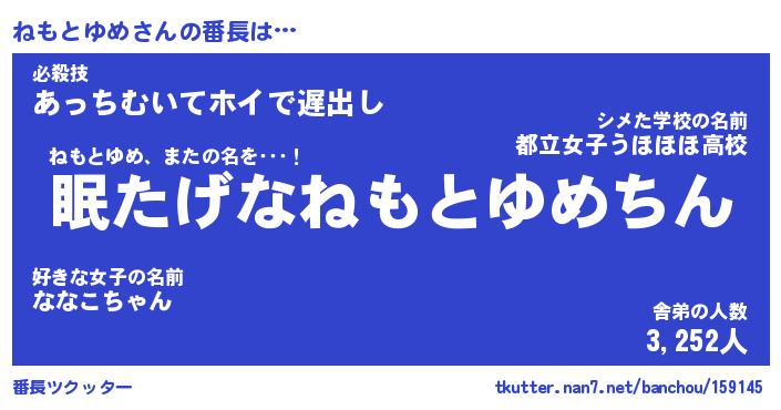 | ファンタジー風あだ名 | 『ネモフェル』『エターナルネモトユメー』 |