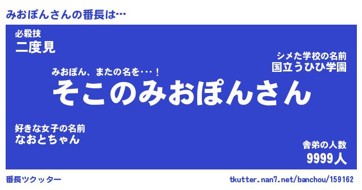 | 肩書あだ名 | 『みおぽん御曹司』『みおぽん国家主席』 |