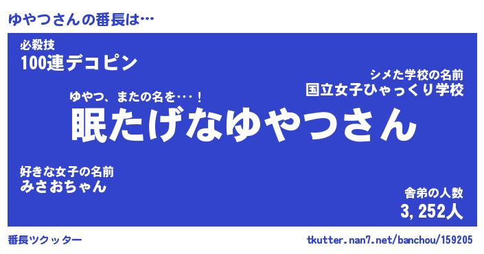 | ヘコむあだ名 | 『ゆやにー』『つくし』『ゆやお』 |