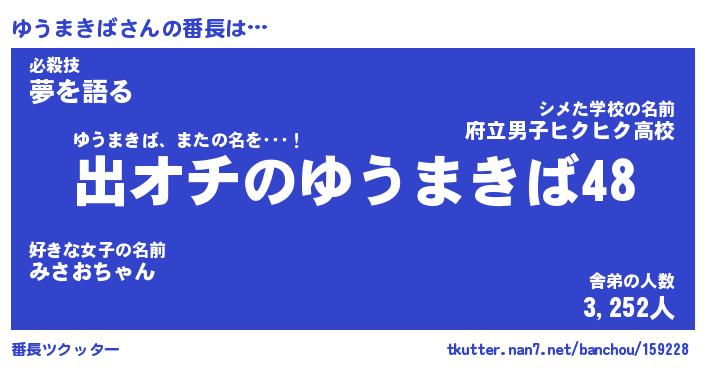 | ファンタジー風あだ名 | 『ユウフェル』『エターナルユウマキバー』 |