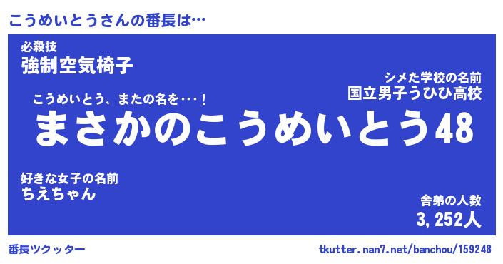 | 伝説のあだ名 | 『伝説のスナイパーこうめいとう』 |