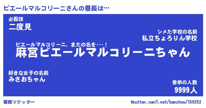 | 意味不明あだ名 | 『ペロリンピエールマルコリーニ』 |