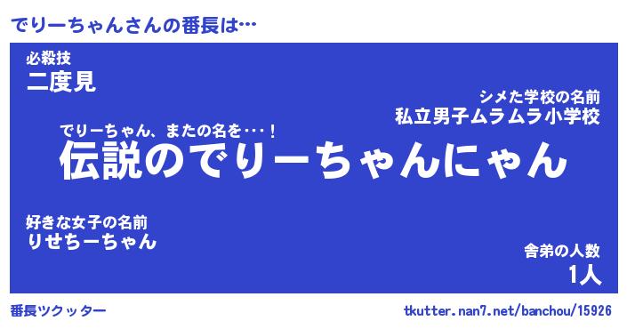 | 2回繰り返すあだ名 | 『でりでり』『ででりり』『あんあん』 |