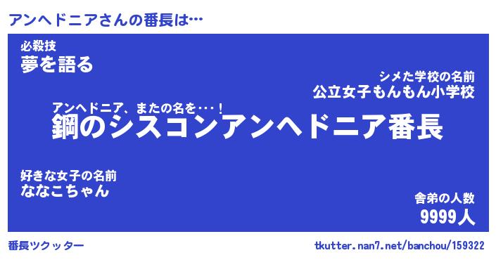 | ヘコむあだ名 | 『アンにー』『なまこ酢』 |