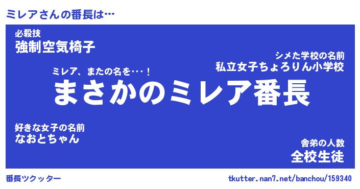 | 意味不明あだ名 | 『ペロリンミレア』『ミレアフォーエバー』 |