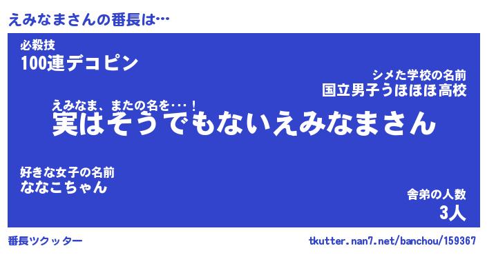 | 欧米人風あだ名 | 『マイケルえみなま』『ウサインえみなま』 |