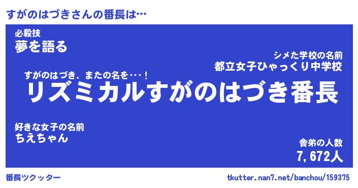 | 恥ずかしいあだ名 | 『プリティーすがのはづき』『すがっちょ』 |
