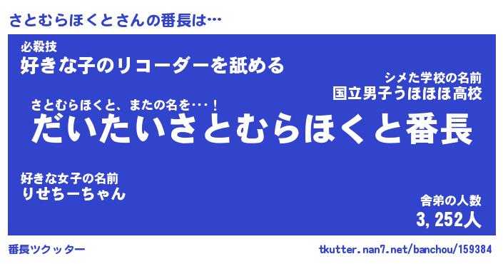 | 男性向けラノベタイトル風あだ名 | 『さとむらほくとの憂鬱』 |