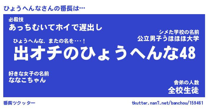 | ヒーロー風カッコイイあだ名 | 『スーパーヒョウヘンナ』『天弓騎士ヒョ』 |