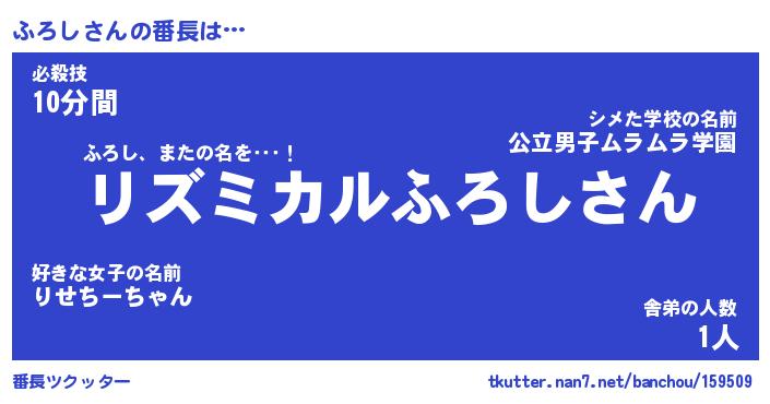| 意味不明あだ名 | 『ペロリンふろし』『ふろしフォーエバー』 |