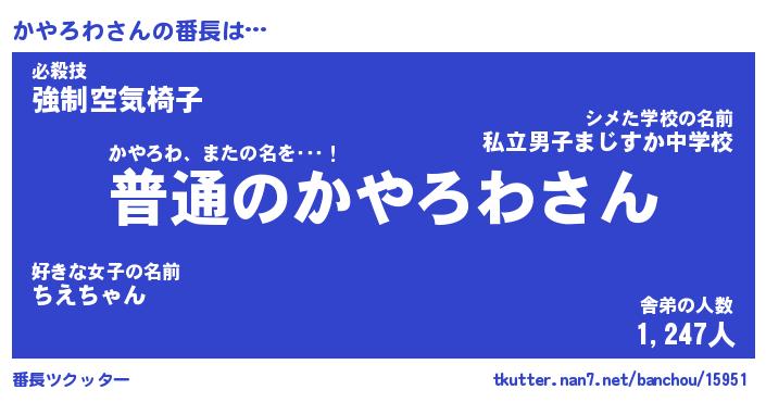 | 男性向けラノベタイトル風あだ名 | 『かやろわの憂鬱』 |