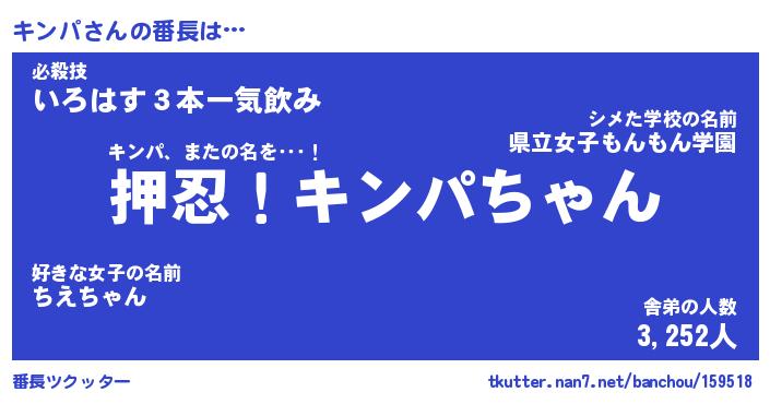 | 意味不明あだ名 | 『ペロリンキンパ』『キンパフォーエバー』 |