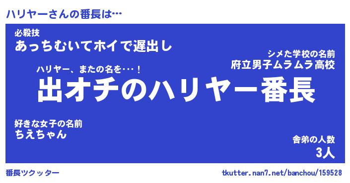 | 意味不明あだ名 | 『ペロリンハリヤー』『永久保存ハリヤー』 |