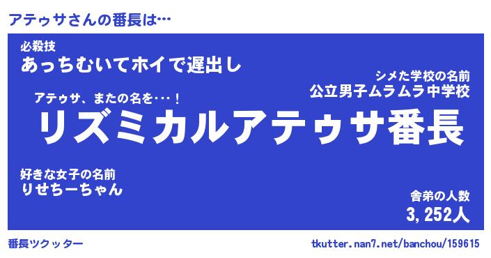 | ファンタジー風あだ名 | 『アテフェル』『エターナルアテゥサー』 |