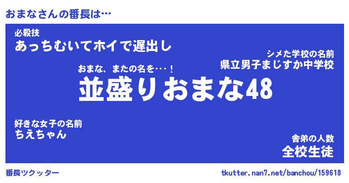 | 意味不明あだ名 | 『ペロリンおまな』『おまなフォーエバー』 |