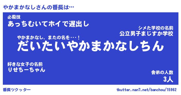 | ポケモン風あだ名 | 『ヤカチュウ』『ヤカマダネ』 |