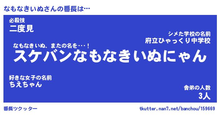 | ヒーロー風カッコイイあだ名 | 『スーパーナモナキイヌ』『天弓騎士ナモ』 |
