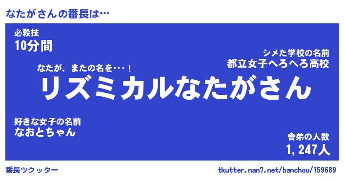 | 2回繰り返すあだ名 | 『なたなた』『ななたた』『にたにた』 |