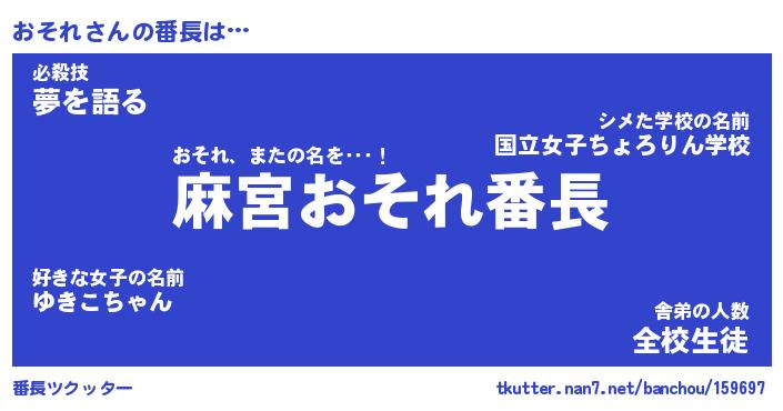 | ヒーロー風カッコイイあだ名 | 『スーパーオソレ』『ウルトラおそれマン』 |