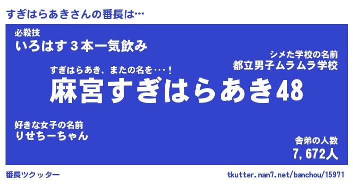 | 肩書あだ名 | 『すぎはらあきCEO』『すぎはらあき副担任』 |