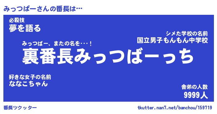| 肩書あだ名 | 『みっつばー店長』『みっつばー大統領』 |