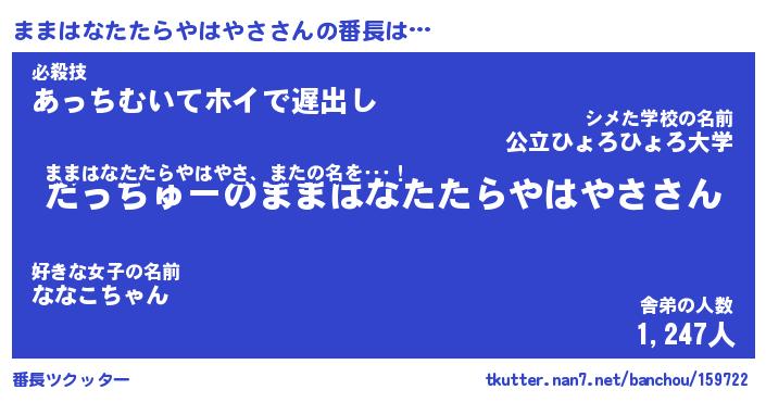 | 胡散臭い通販商品みたいなあだ名 | 『必ず成功するブレスレット…その名も「ままはなたたらやはやさ」』 |