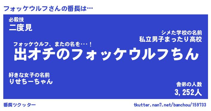 | 男性向けラノベタイトル風あだ名 | 『フォッケウルフの憂鬱』 |