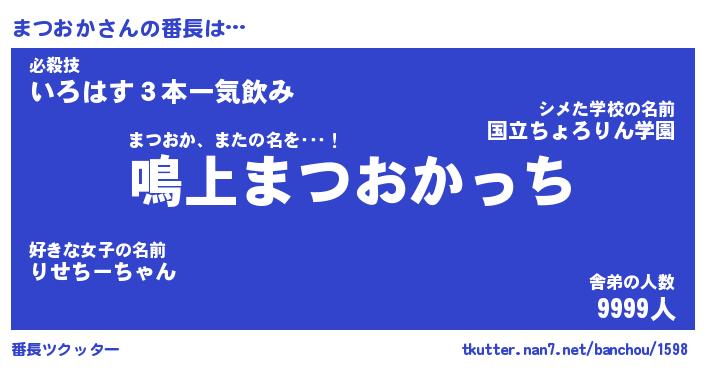 | 意味不明あだ名 | 『ペロリンまつおか』『永久保存まつおか』 |