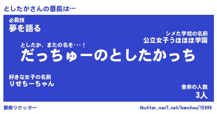 | ポケモン風あだ名 | 『トシチュウ』『トシタダネ』 |