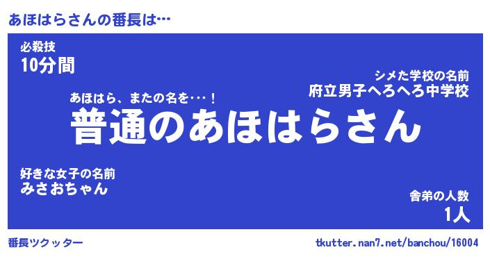 | 意味不明あだ名 | 『ペロリンあほはら』『永久保存あほはら』 |