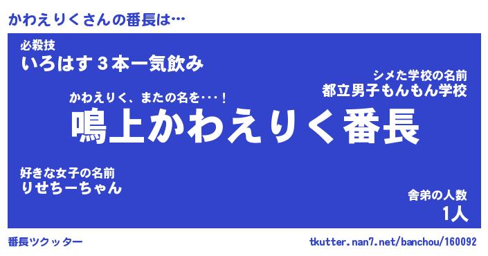 | ヘコむあだ名 | 『かわにゅー』『なまこ酢』『かわを』 |