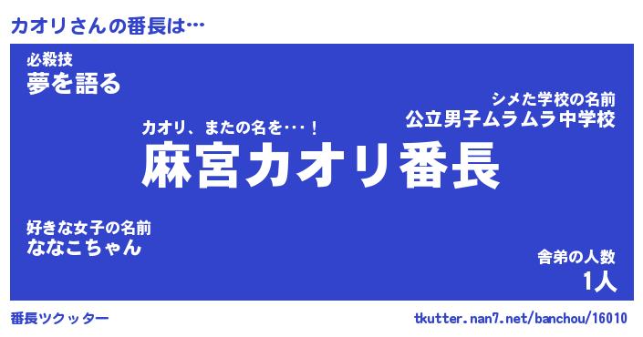 | ヒーロー風カッコイイあだ名 | 『スーパーカオリ』『ウルトラカオリマン』 |
