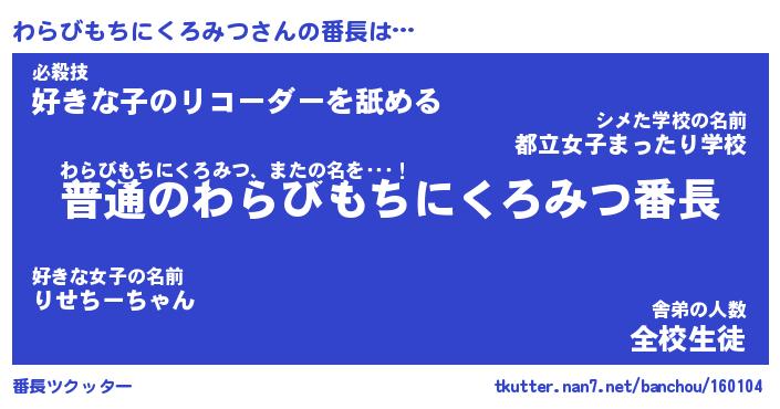 | ヒーロー風カッコイイあだ名 | 『スーパーワラビモチニクロミツ』 |