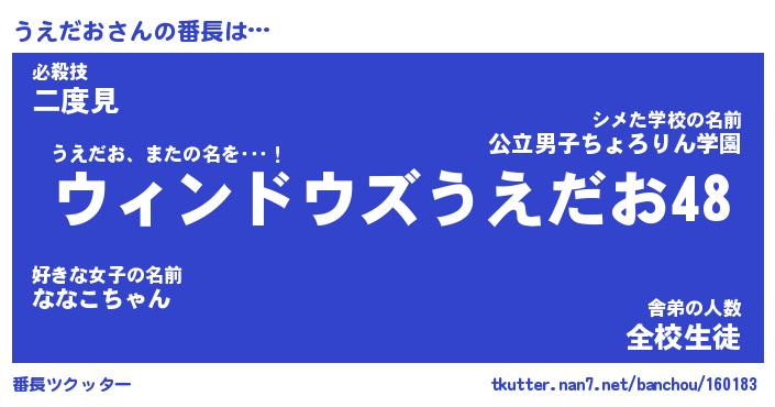 | 意味不明あだ名 | 『ペロリンうえだお』『永久保存うえだお』 |