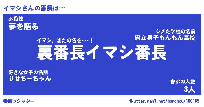 | 肩書あだ名 | 『イマシ店長』『イマシ国家主席』 |