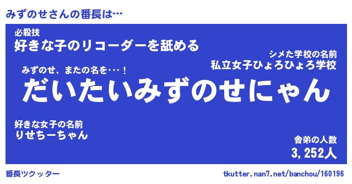 | 肩書あだ名 | 『みずのせ店長』『みずのせ総理大臣』 |