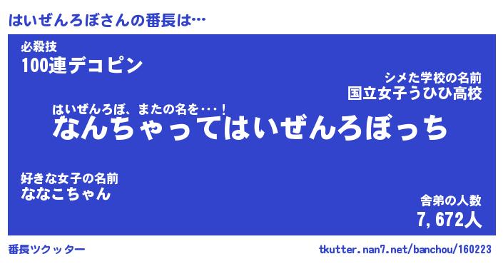 | 伝説のあだ名 | 『伝説のスナイパーはいぜんろぼ』 |