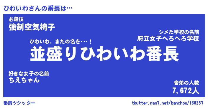 | ヘコむあだ名 | 『ひわふぇ~』『牛乳』『ひわっちょ』 |