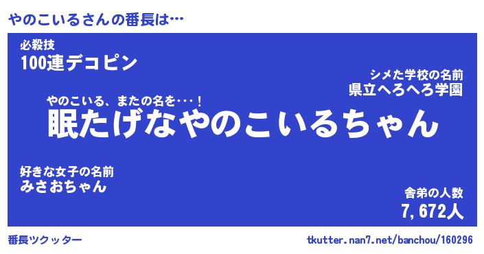| 男性向けラノベタイトル風あだ名 | 『ヤノコイルアートオンライン』 |