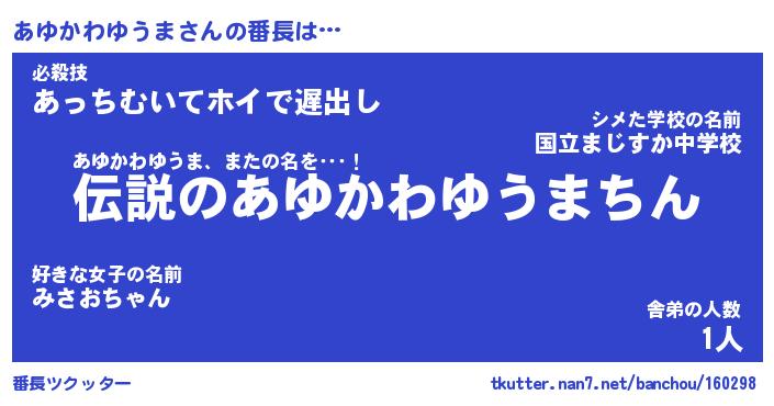 | 伝説のあだ名 | 『伝説の竜騎士あゆかわゆうま』 |