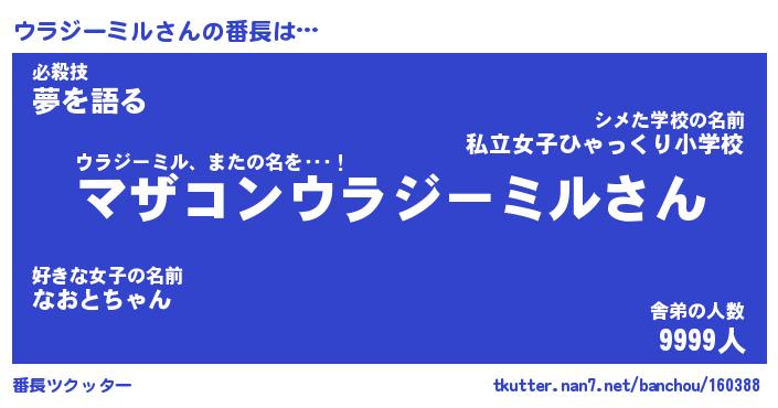 | ヘコむあだ名 | 『ウラっふぃ~』『豆乳』『ウラっ子』 |