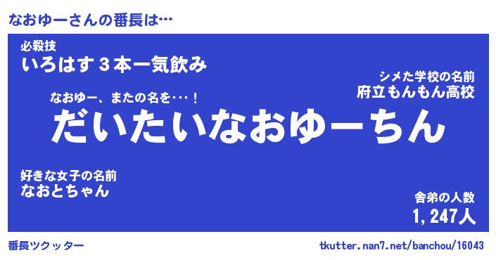 | 意味不明あだ名 | 『ペロリンなおゆー』『永久保存なおゆー』 |