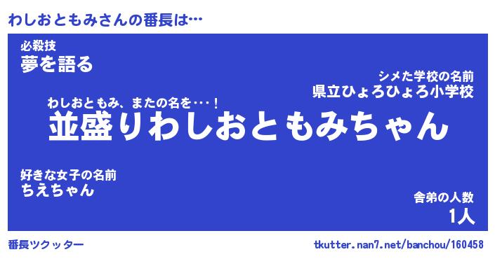 | ヒーロー風カッコイイあだ名 | 『スーパーワシオトモミ』『炎刃騎士ワシ』 |