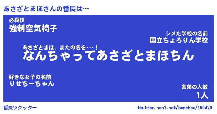 | ポケモン風あだ名 | 『アサチュウ』『アサザダネ』 |