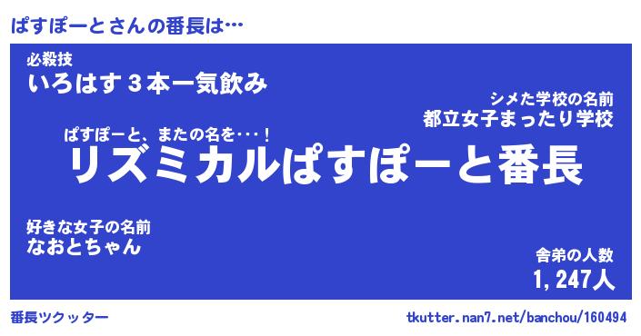 | ヘコむあだ名 | 『ぱすもー』『なまこ酢』『ぱすを』 |