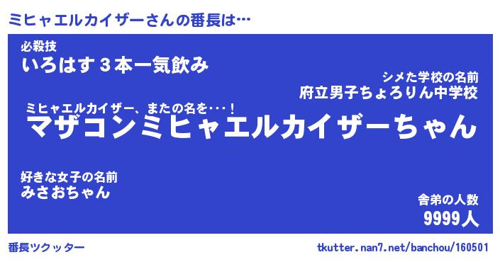 | 欧米人風あだ名 | 『マイケルミヒャエルカイザー』 |