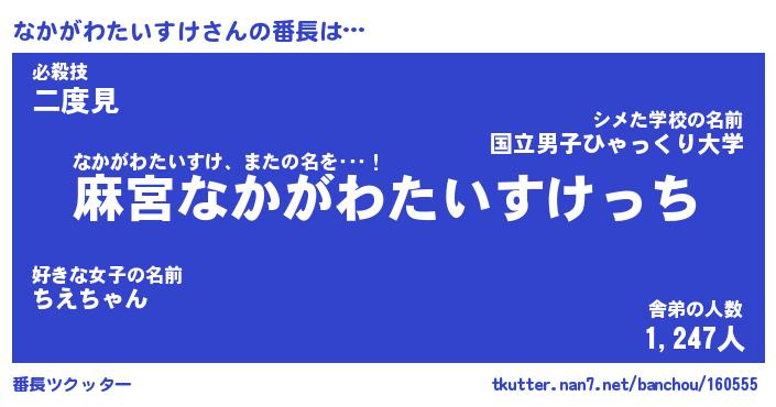 | ヒーロー風カッコイイあだ名 | 『スーパーナカガワタイスケ』 |