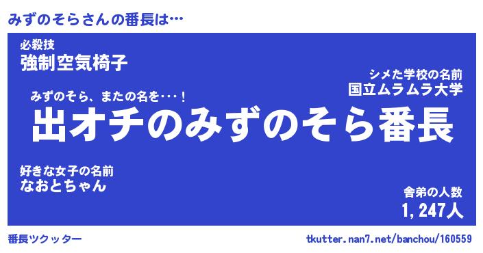 | 肩書あだ名 | 『みずのそら店長』『みずのそら国家主席』 |
