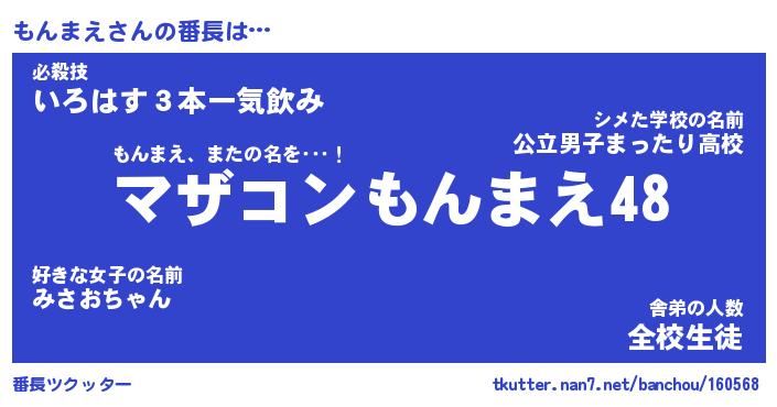 | 意味不明あだ名 | 『ペロリンもんまえ』『永久保存もんまえ』 |